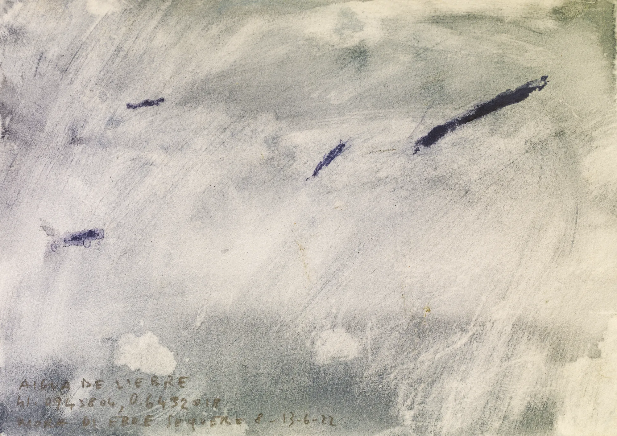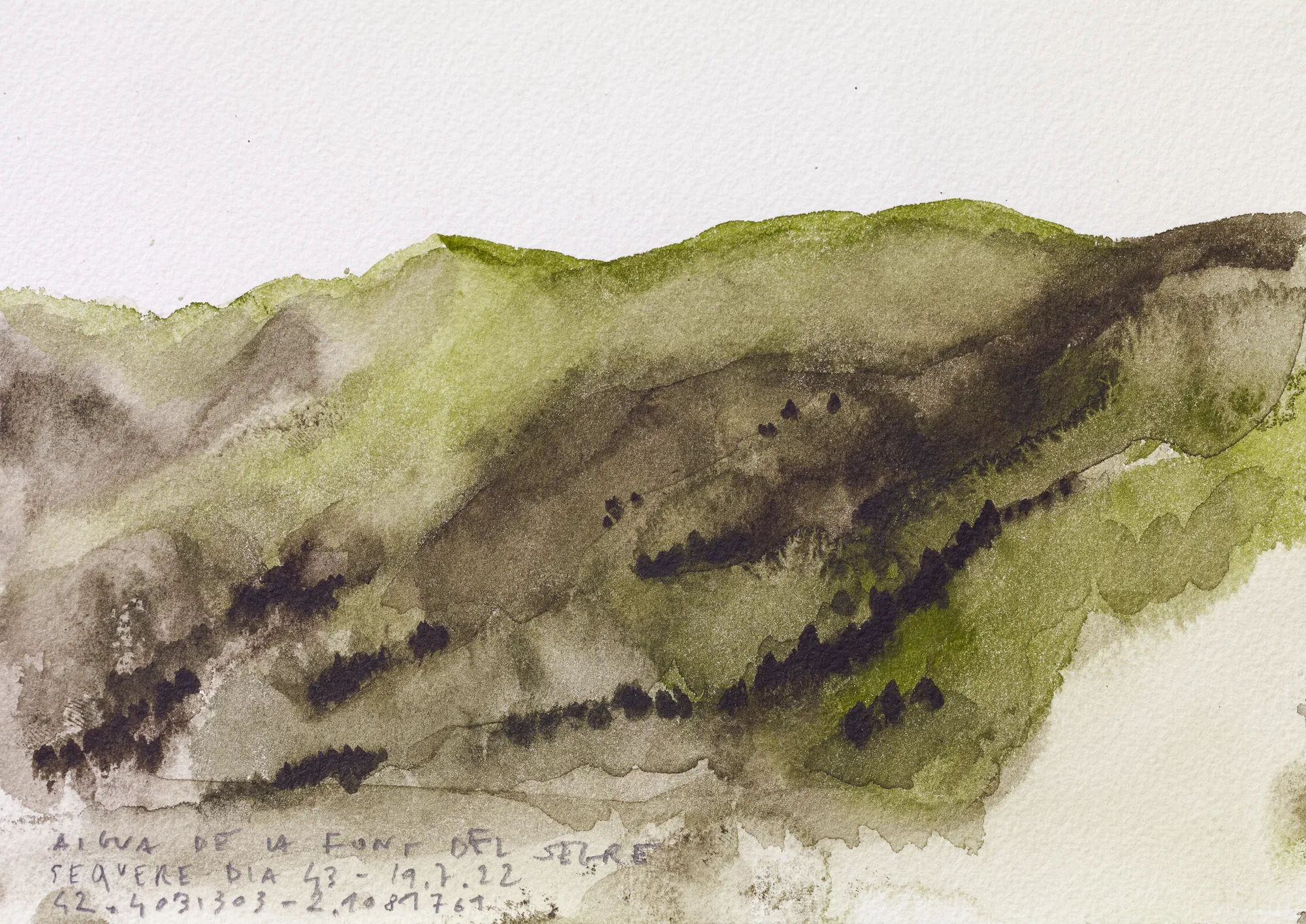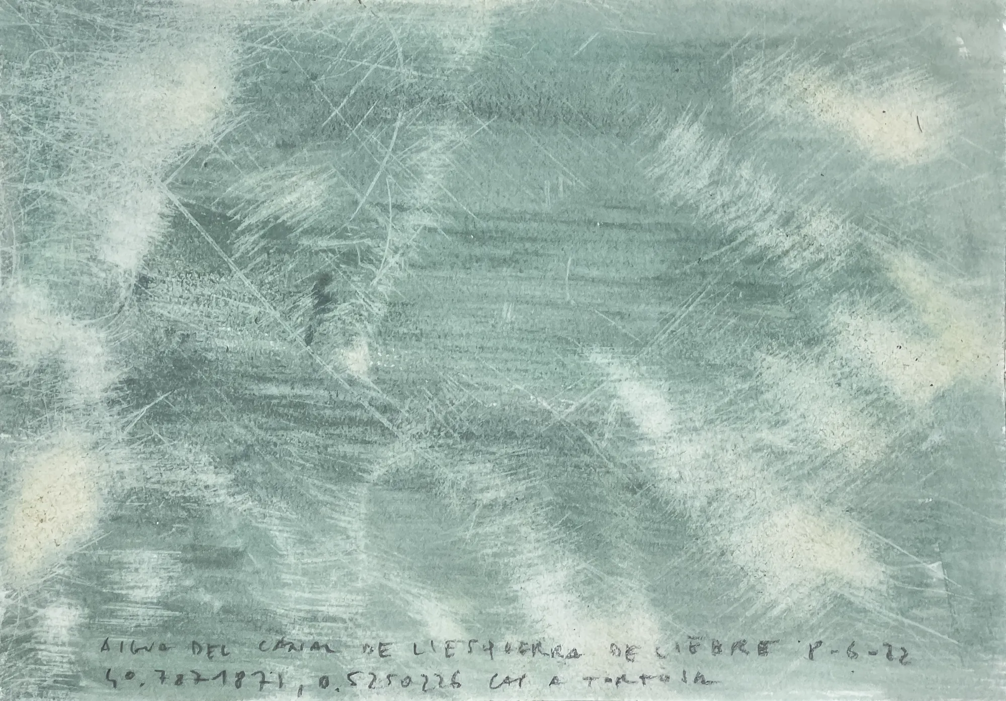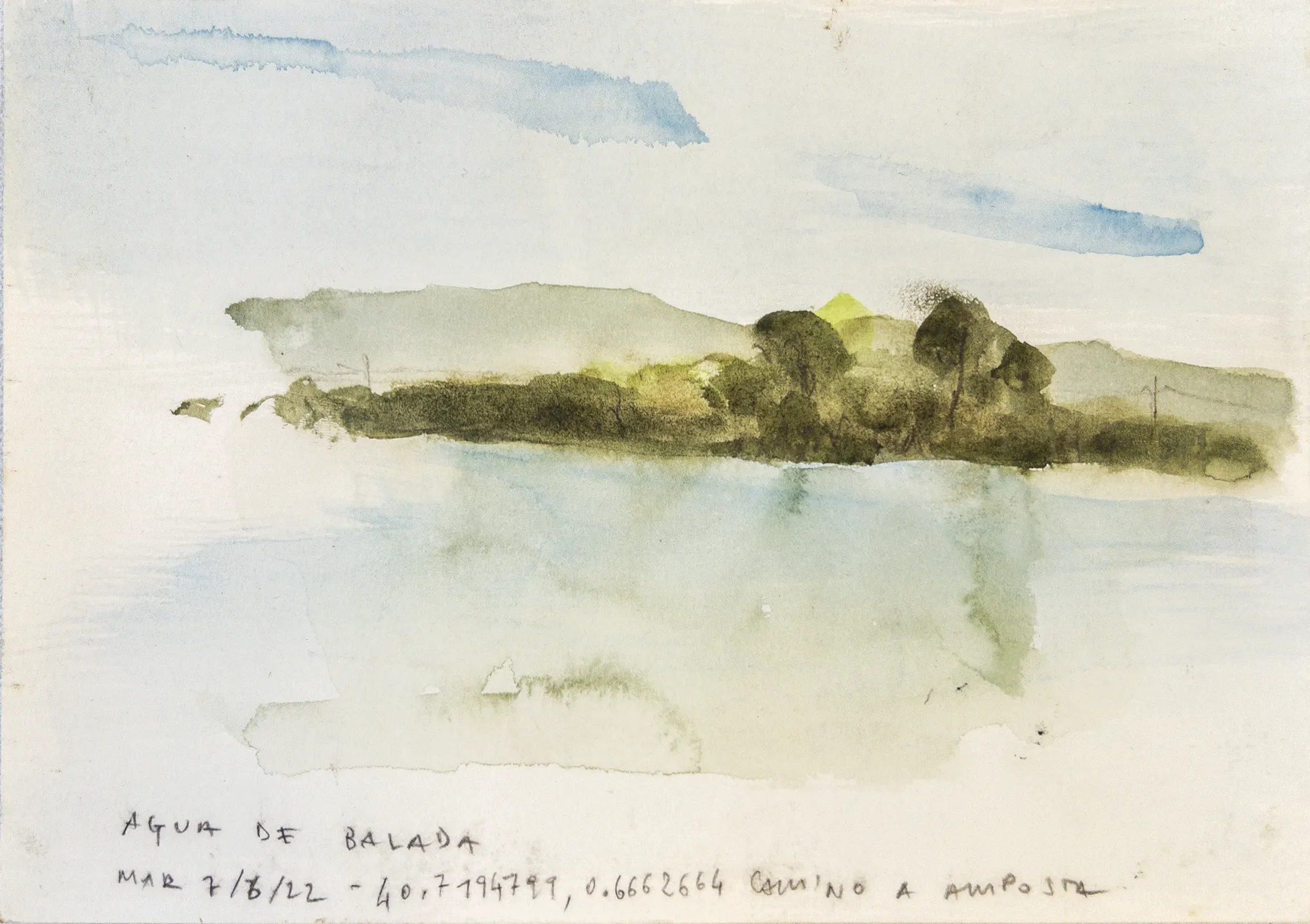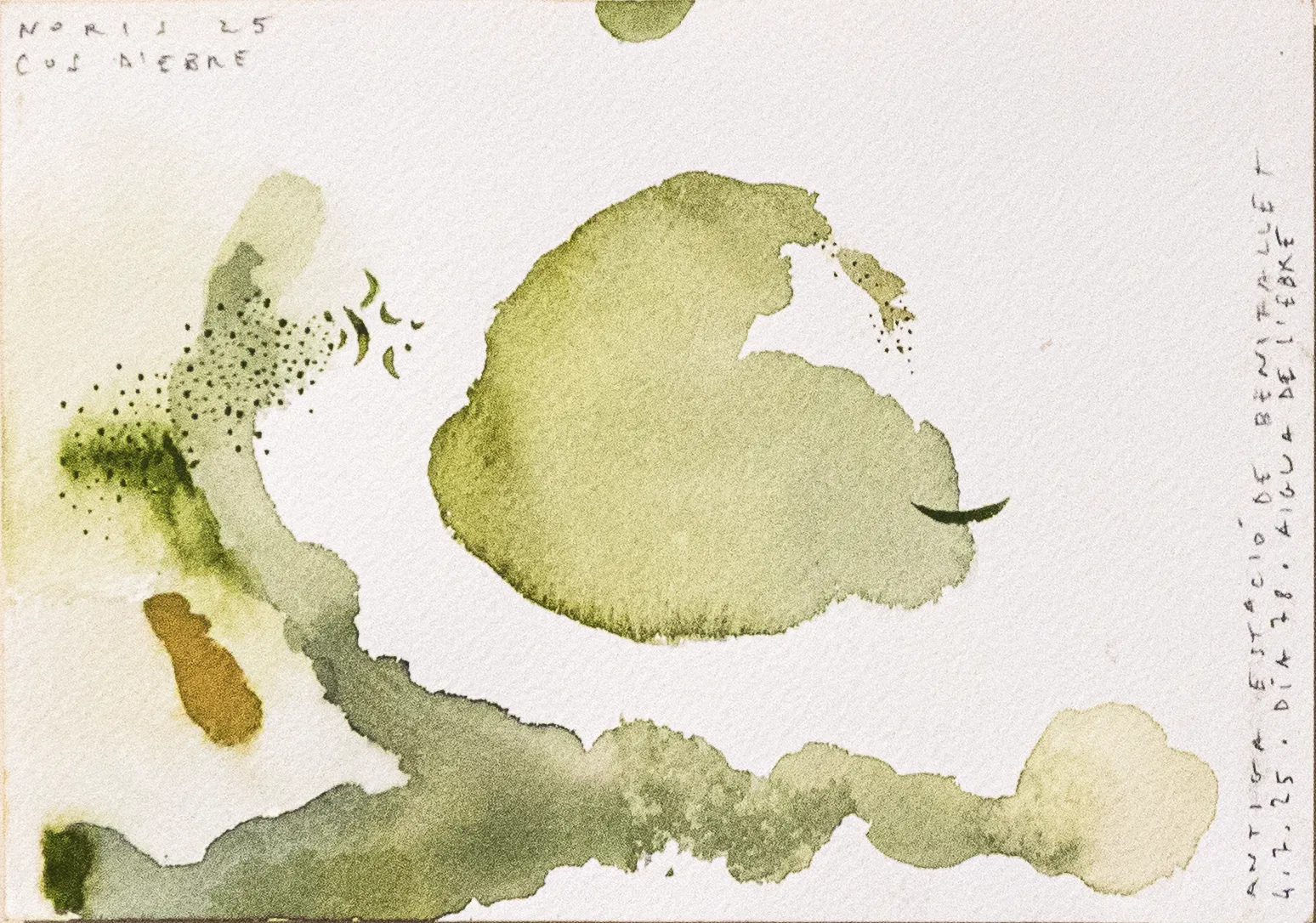 Esta serie de acuarelas, realizadas con agua de ríos durante las travesías de Sequere (2022) y Cos d’Ebre (2025), intenta fijar la memoria del río, material y simbólicamente, en el papel.